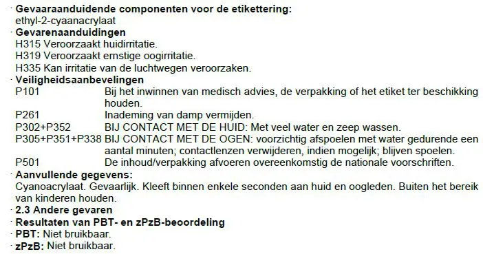 Afhankelijk van de temperatuur en vochtigheid repareert dit product in ongeveer 30 seconden. Te gebruiken voor het onderling verlijmen van hout, metaal, keramiek, steen en glas. Dus het lijmen van twee van dezelfde materialen maar ook in combinatie met elkaar.