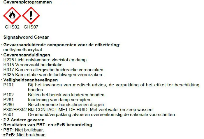- breng de lijm eenzijdig aan. De lijm is ongeveer 3 minuten verwerkbaar. Delen samenvoegen en ongeveer 15 minuten op hun plaats houden. Volledige uitharding na 24 uur.