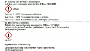 • De activator kan laklagen en kunststof aantasten, daarom altijd eerst testen op een onzichtbare laats.