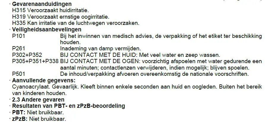 Niet geschikt voor PE, PP, Silicone, PTFE, Styrofoam.